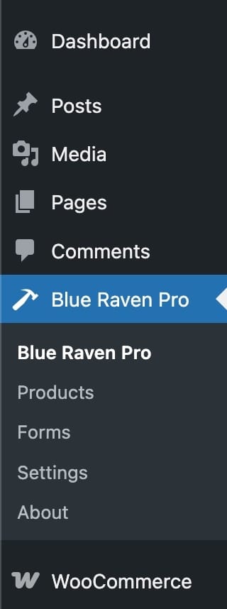 - In your WordPress dashboard, look at the left-hand nav bar and click on Blue Raven.